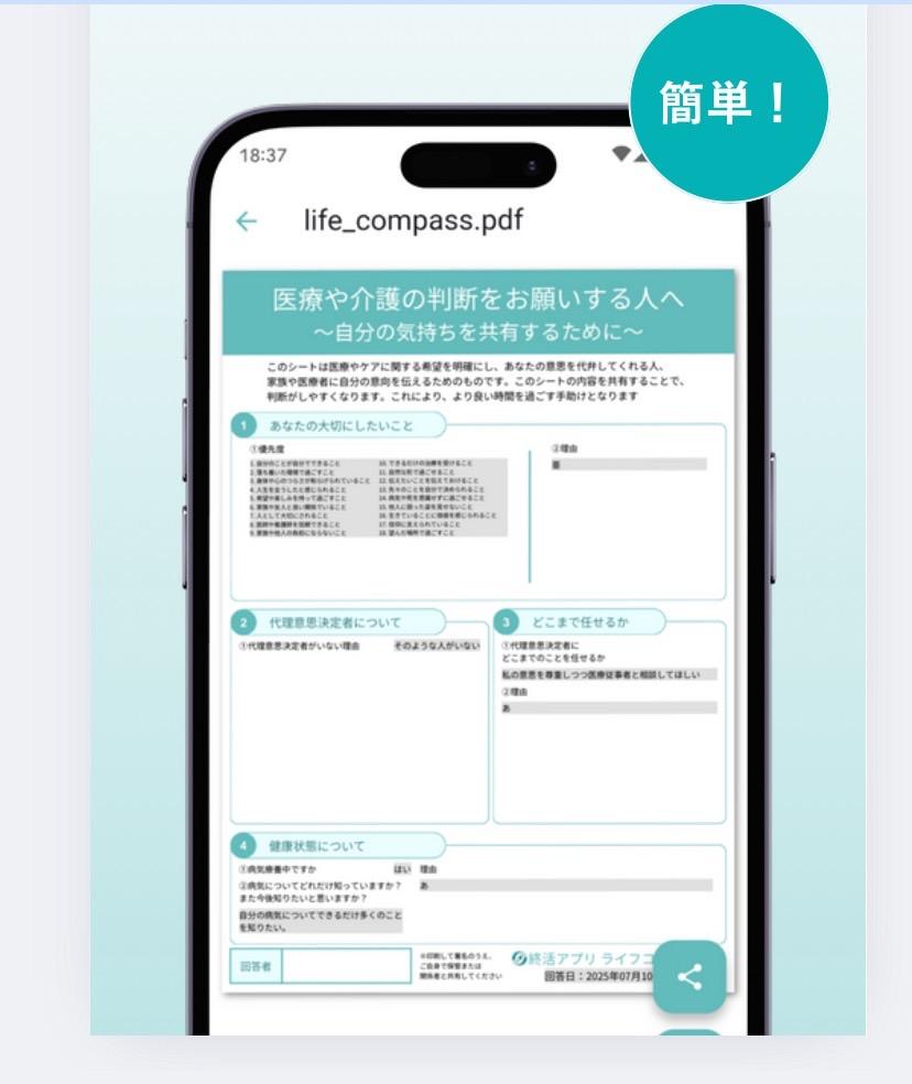 このアプリ『ライフコンパス』は、あなたの想いを整理して、大切な人と共有するためのツールです。